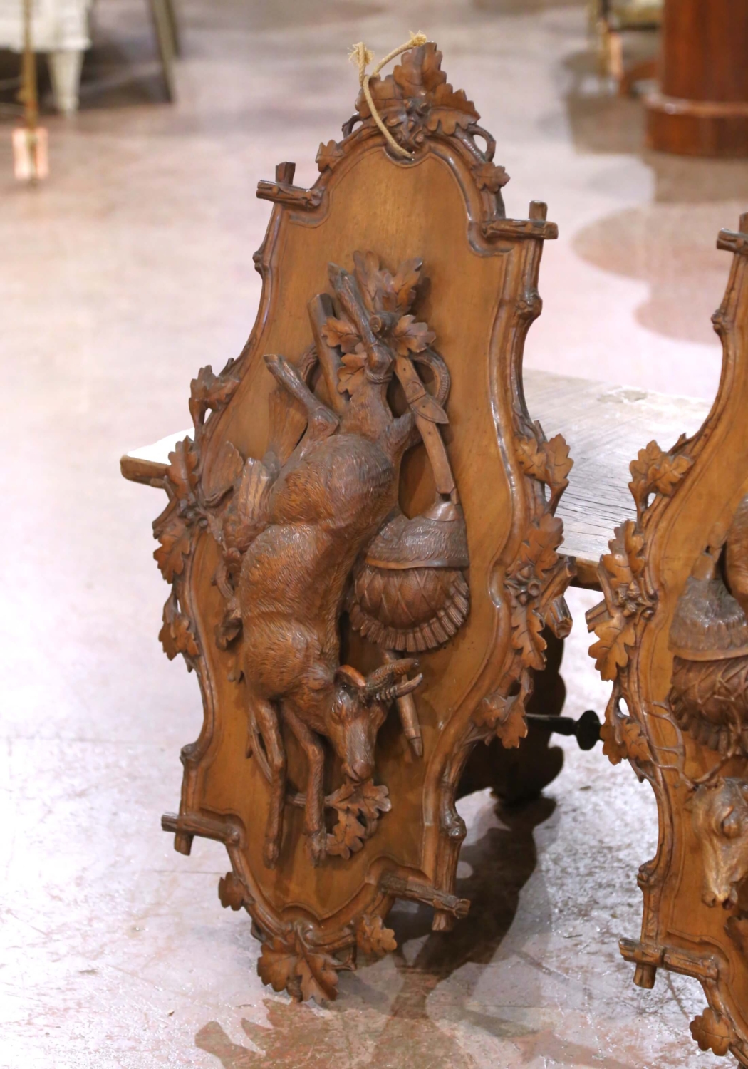 Pair of 19th Century Swiss Black Forest Carved Walnut Hunt Trophy Sculptures