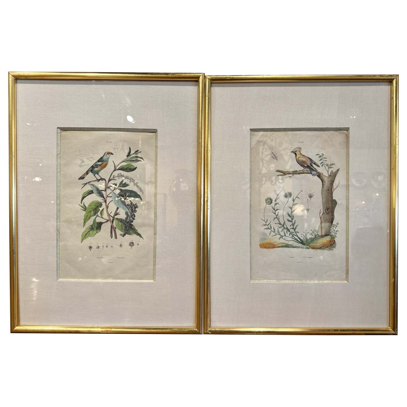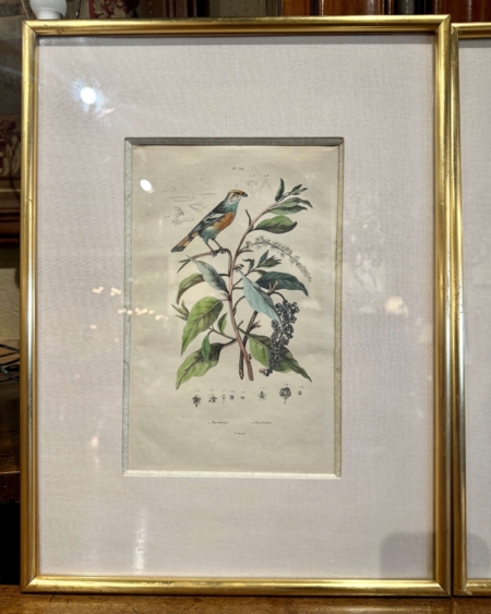 Pair of Early 20th Century French Hand-Colored Bird Framed Prints by E. Guerin