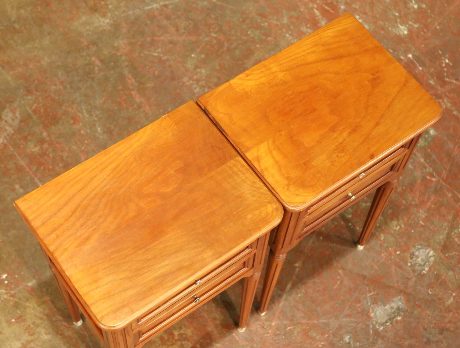 Pair of Late 20th Century French Louis XVI Walnut Bedside Tables with Drawers