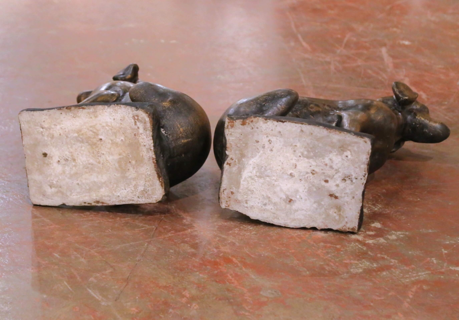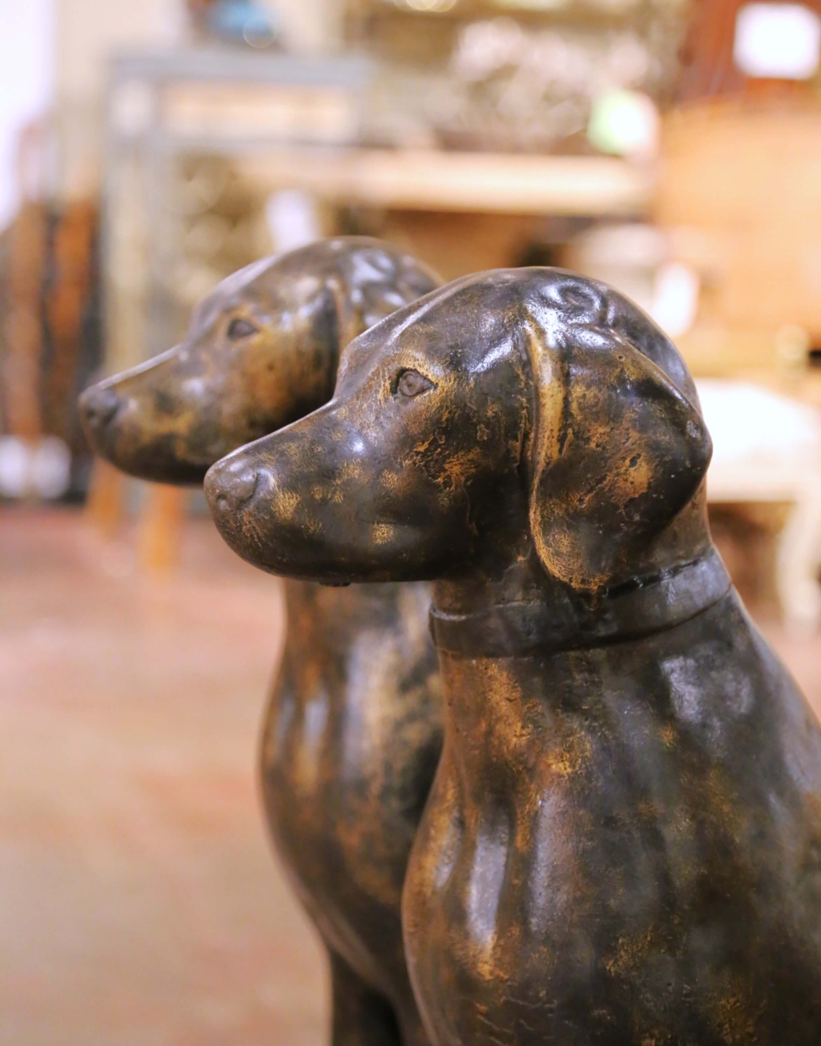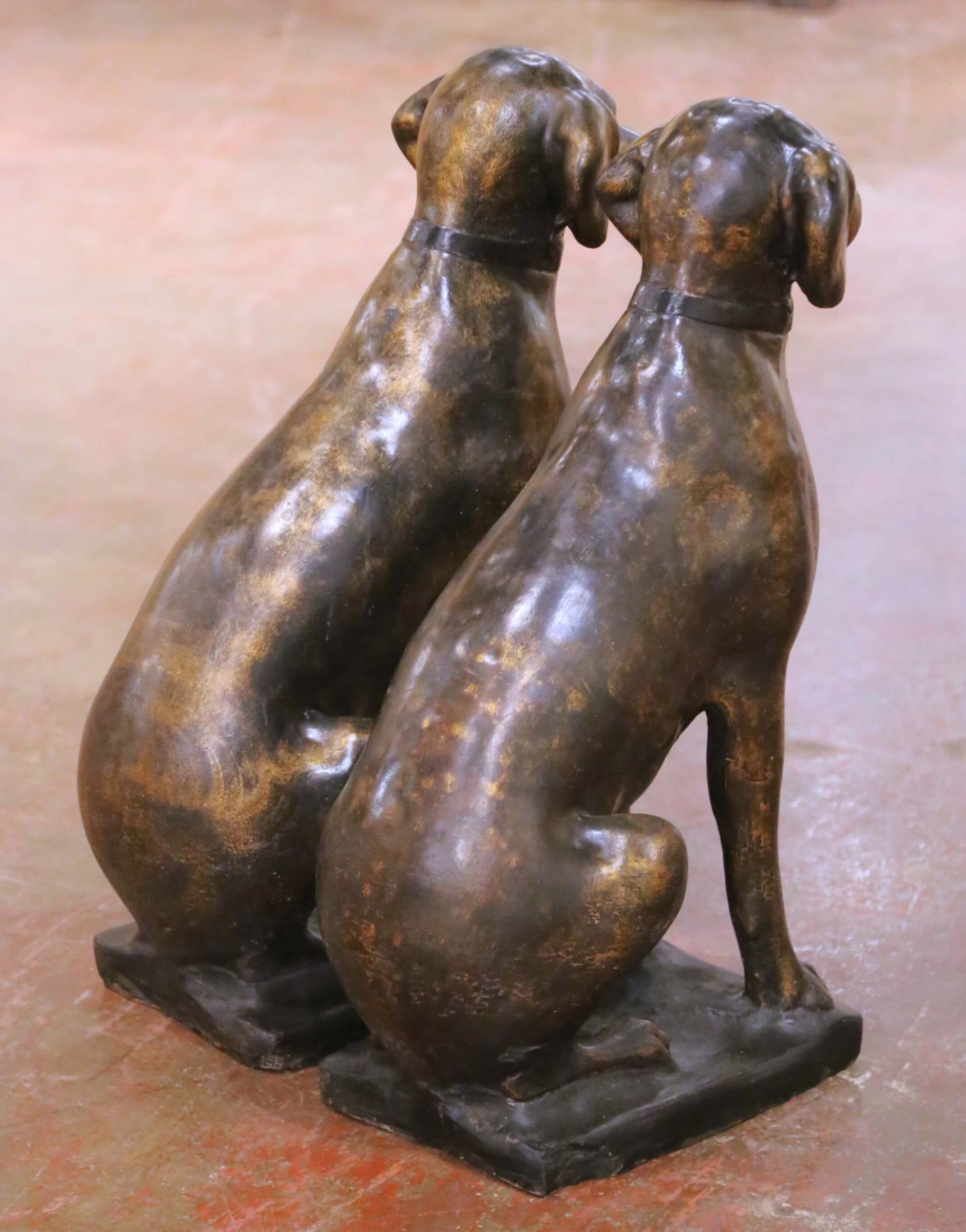 Pair of Mid-Century French Bronzed-Finish Cast Stone Labrador Dog Sculptures