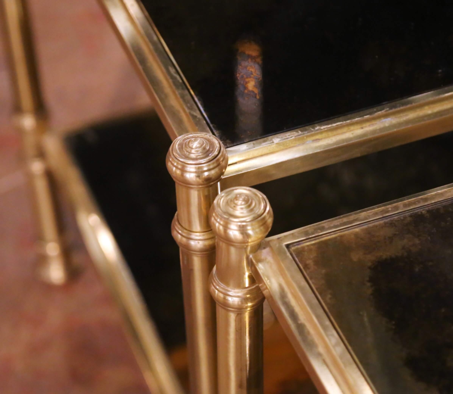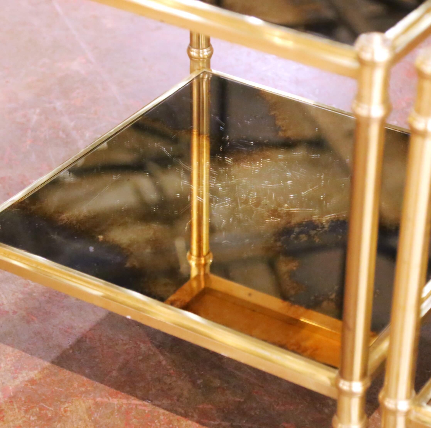 Pair of Mid-Century French Gilt Metal and Smoked Glass Two-Tier Side Tables
