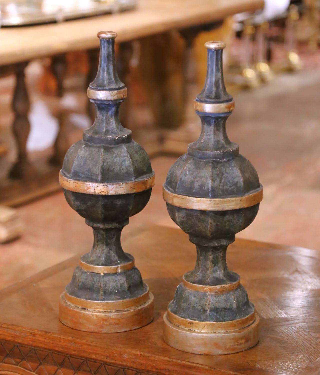Pair of Mid-Century Italian Painted Wood Architectural Altar Finials