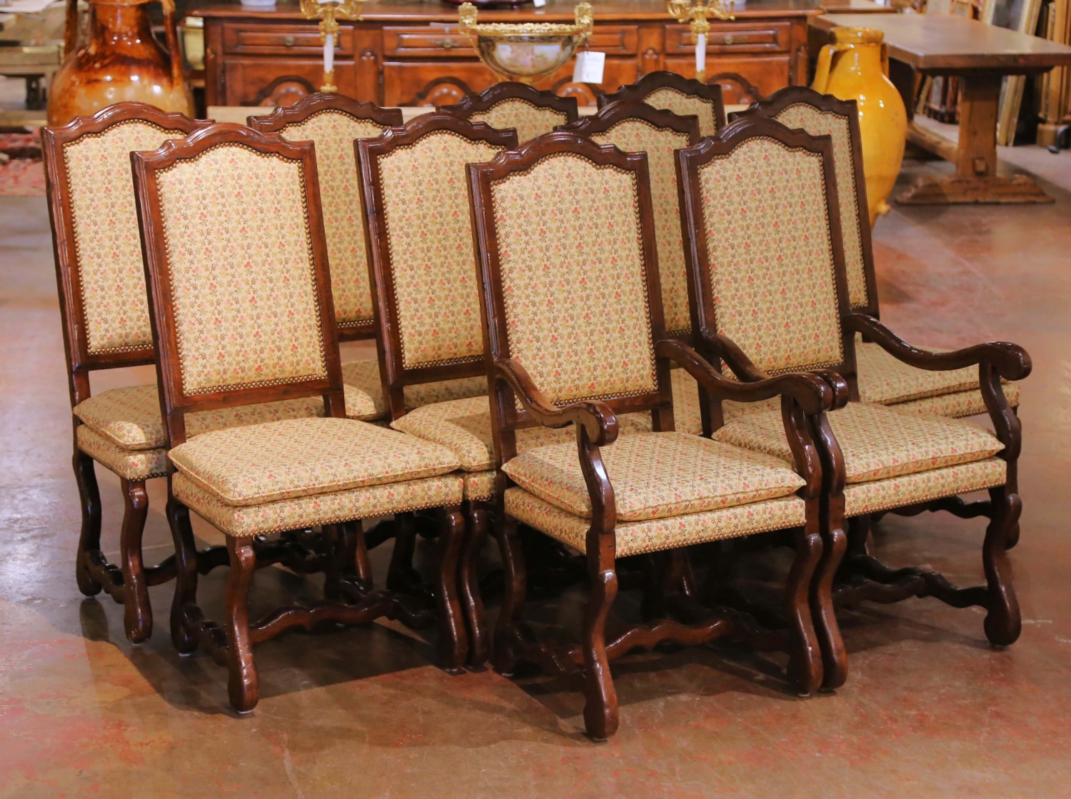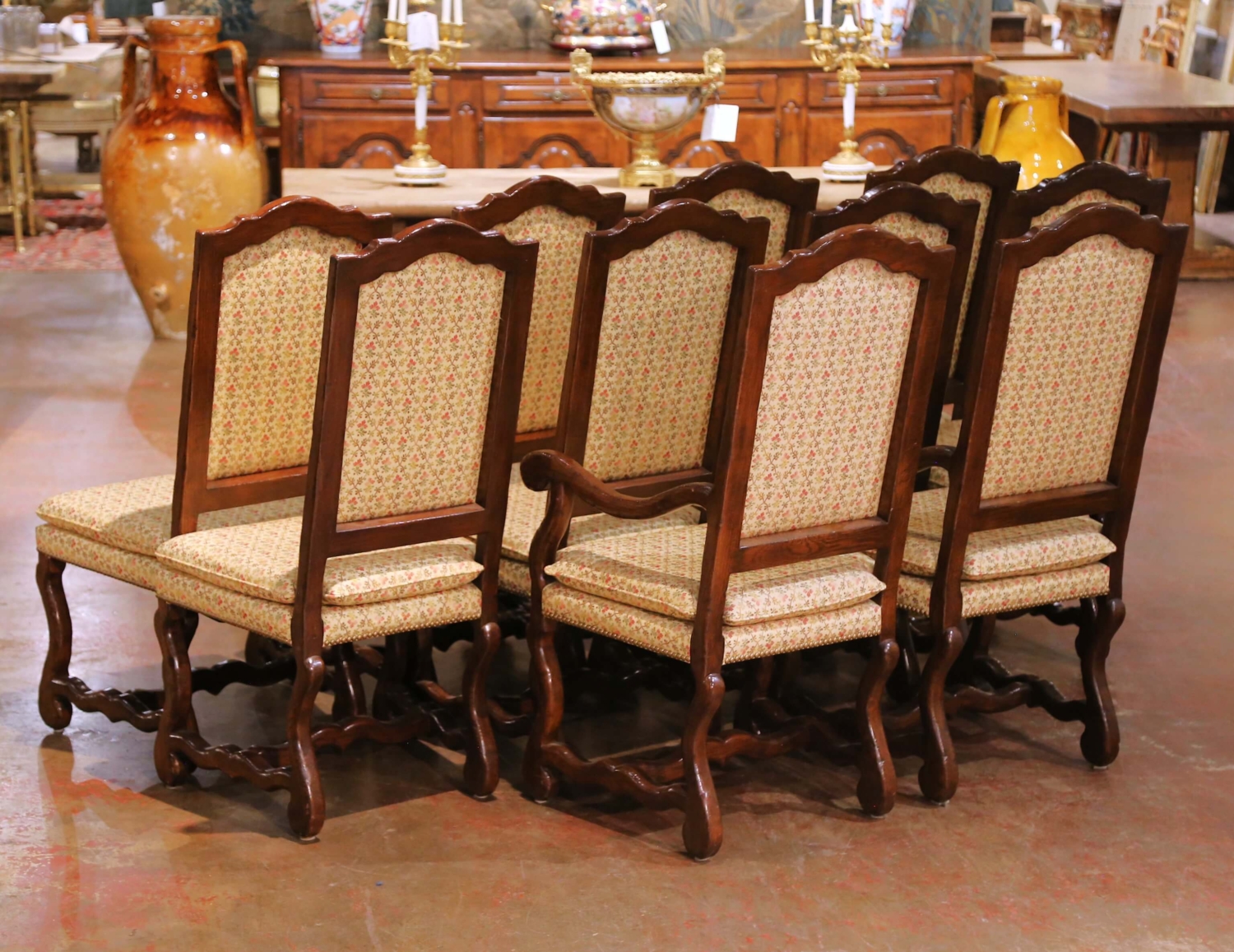 Set of 10 Louis XIII Style Oak Dining Chairs, 8 Sidechairs and 2 Armchairs