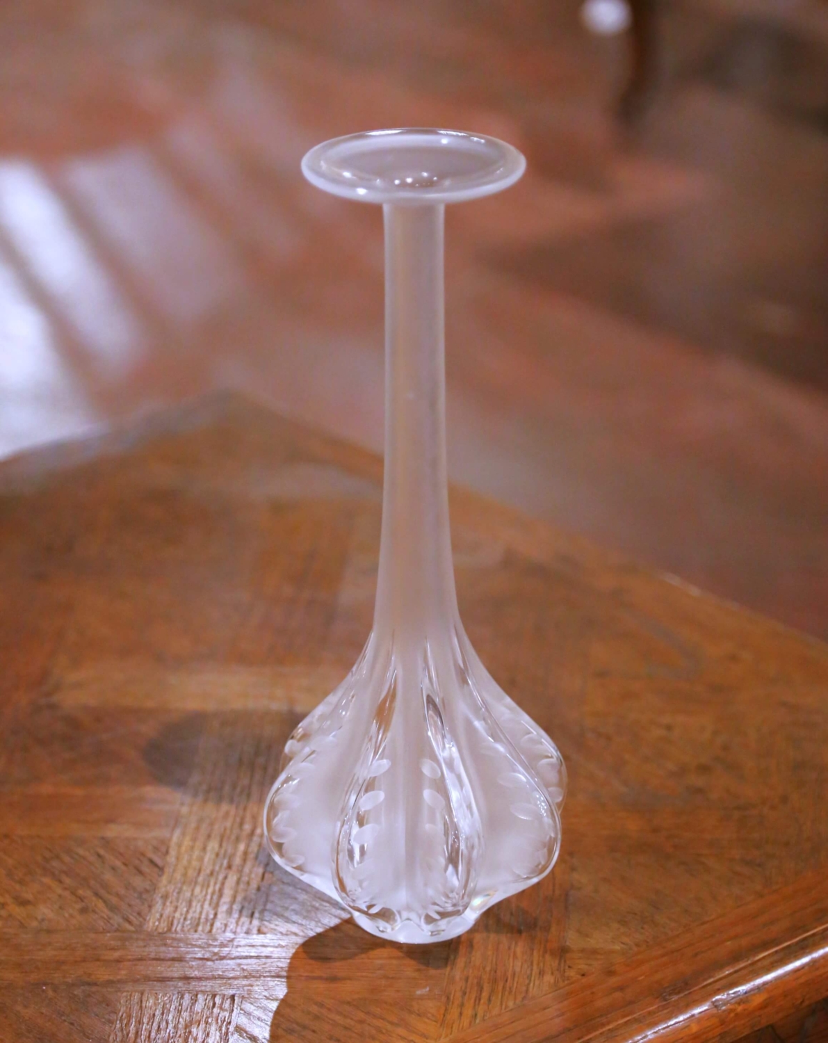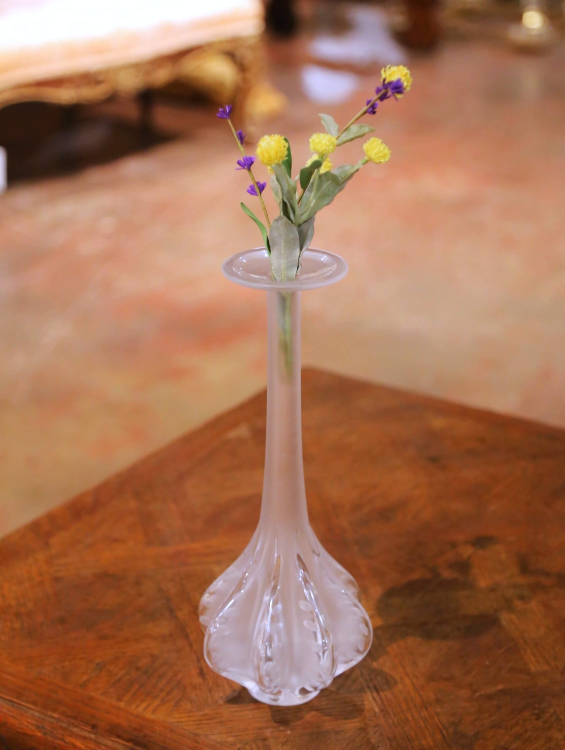 Vintage French Frosted Crystal Soliflore Vase by Marie-Claude Lalique
