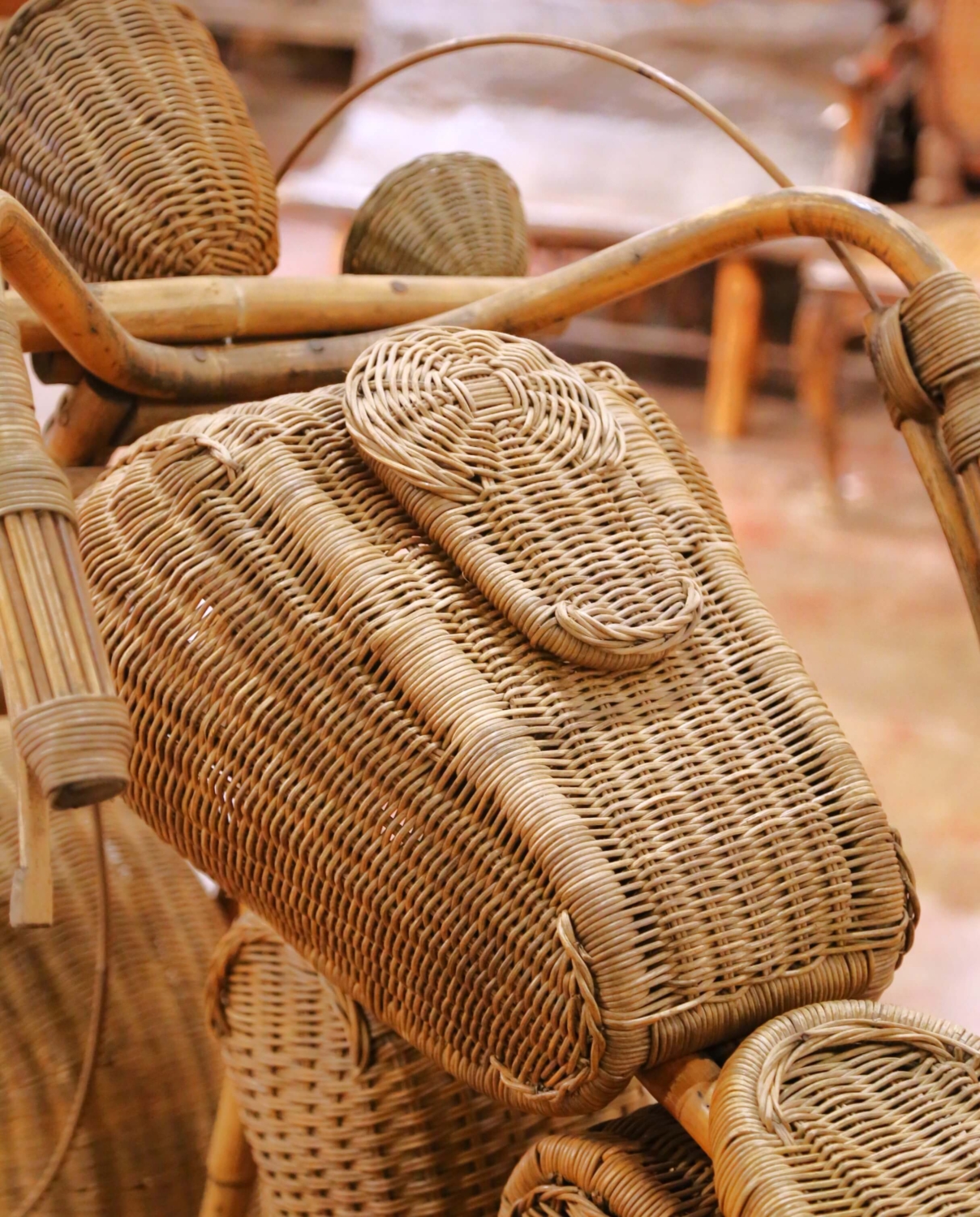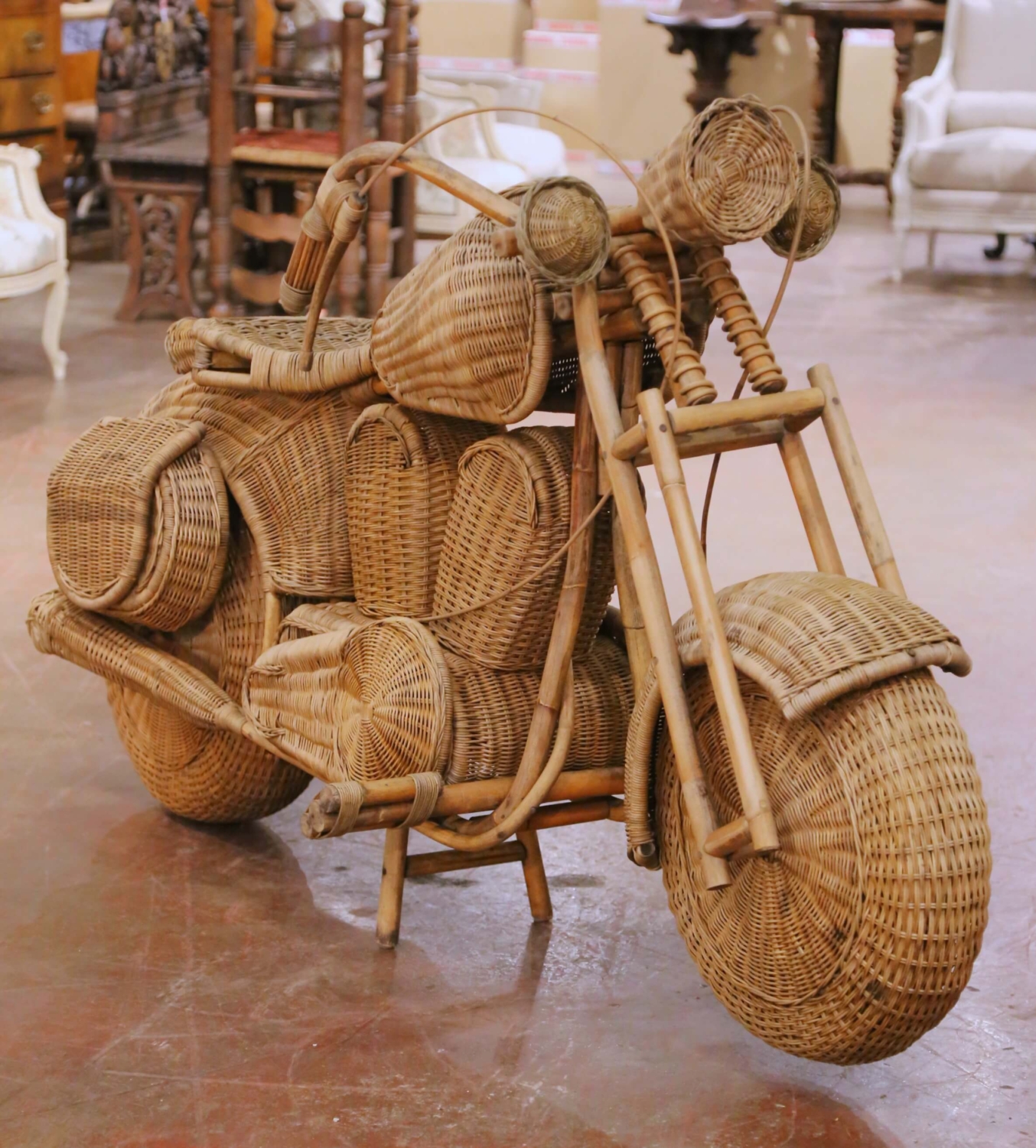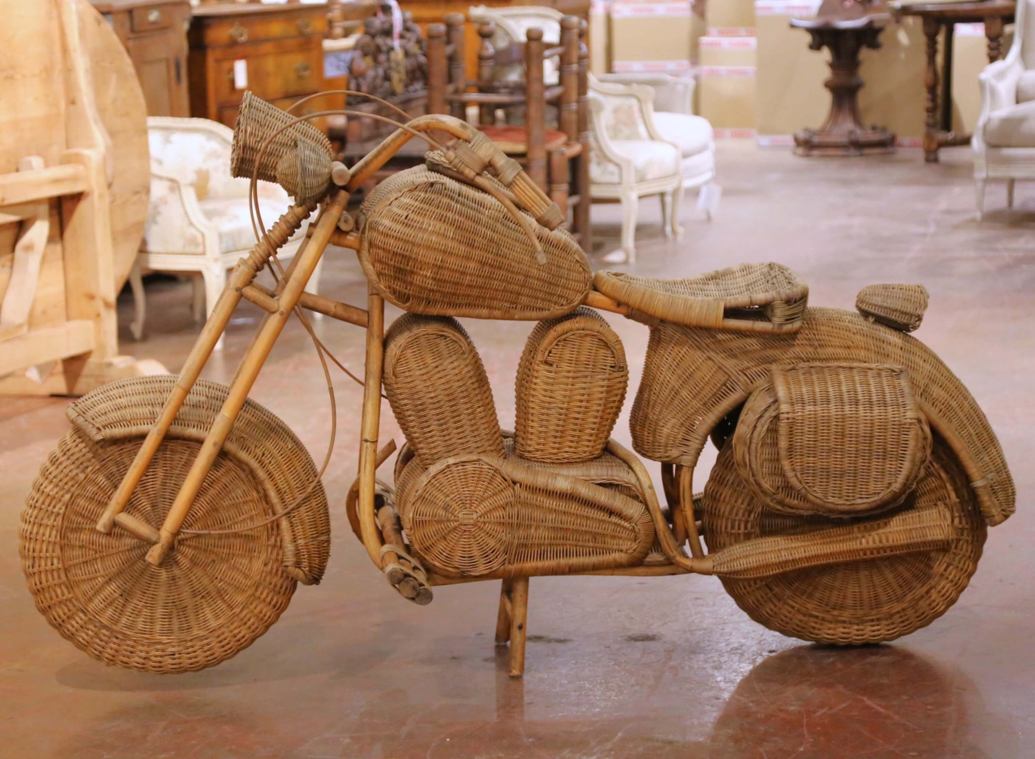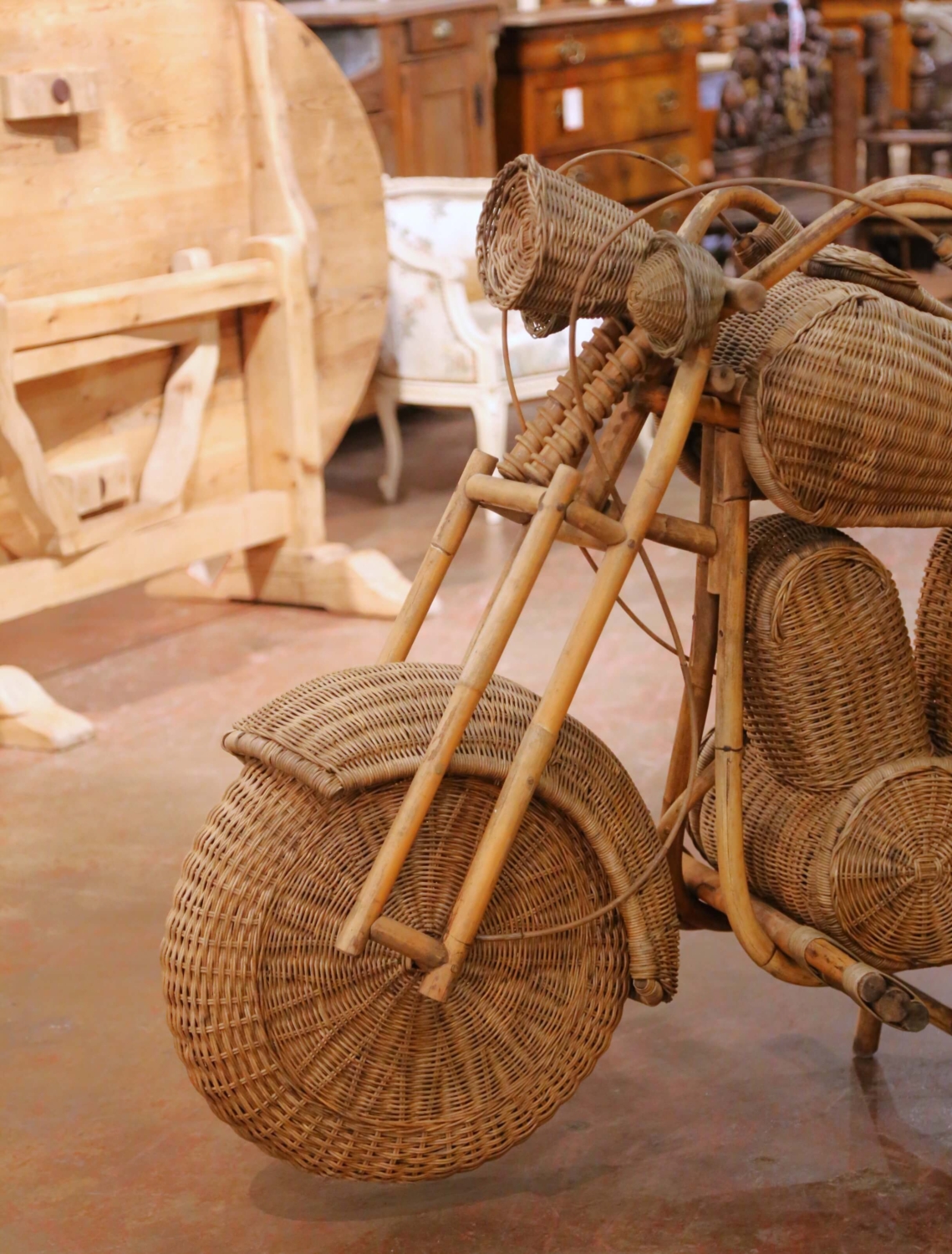 Vintage Handwoven Wicker Motorcycle Sculpture Attributed to Tom Dixon
